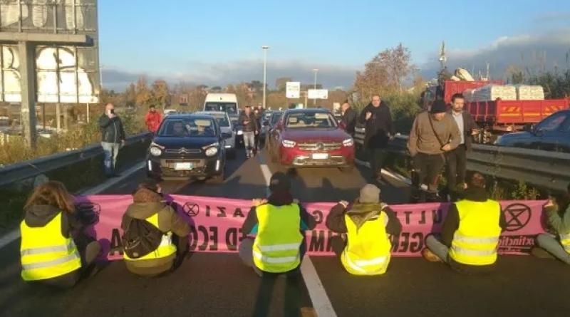 Italian activists have blocked a major road in Rome as part of a series of protests aimed at urging the government to take action to tackle the climate crisis.