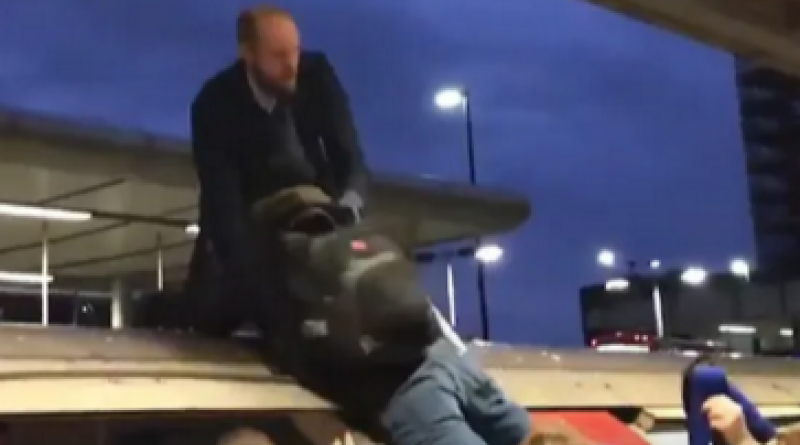 There were clashes at Canning Town tube station as commuters dragged a protester from the roof of a Jubilee line train and set upon him. He had to be defended by London Underground staff and other passersby.