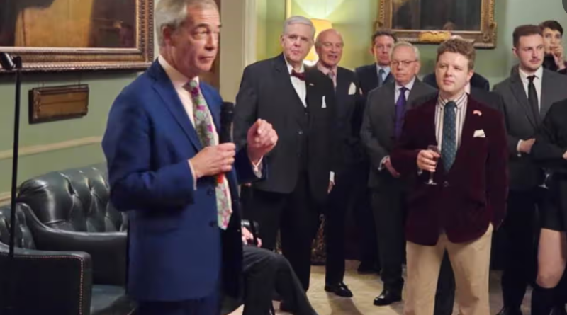 The Reform UK leader was the guest of honour at the launch of Heartland UK/Europe, which is to be headed by a former leader of Ukip and climate denier.