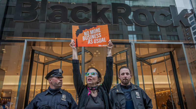 Cover photo: In 2023, activistslined up outside of BlackRock headquarters to protest investments in coal, oil and gas. Credit: Erik McGregor/LightRocket via Getty Images