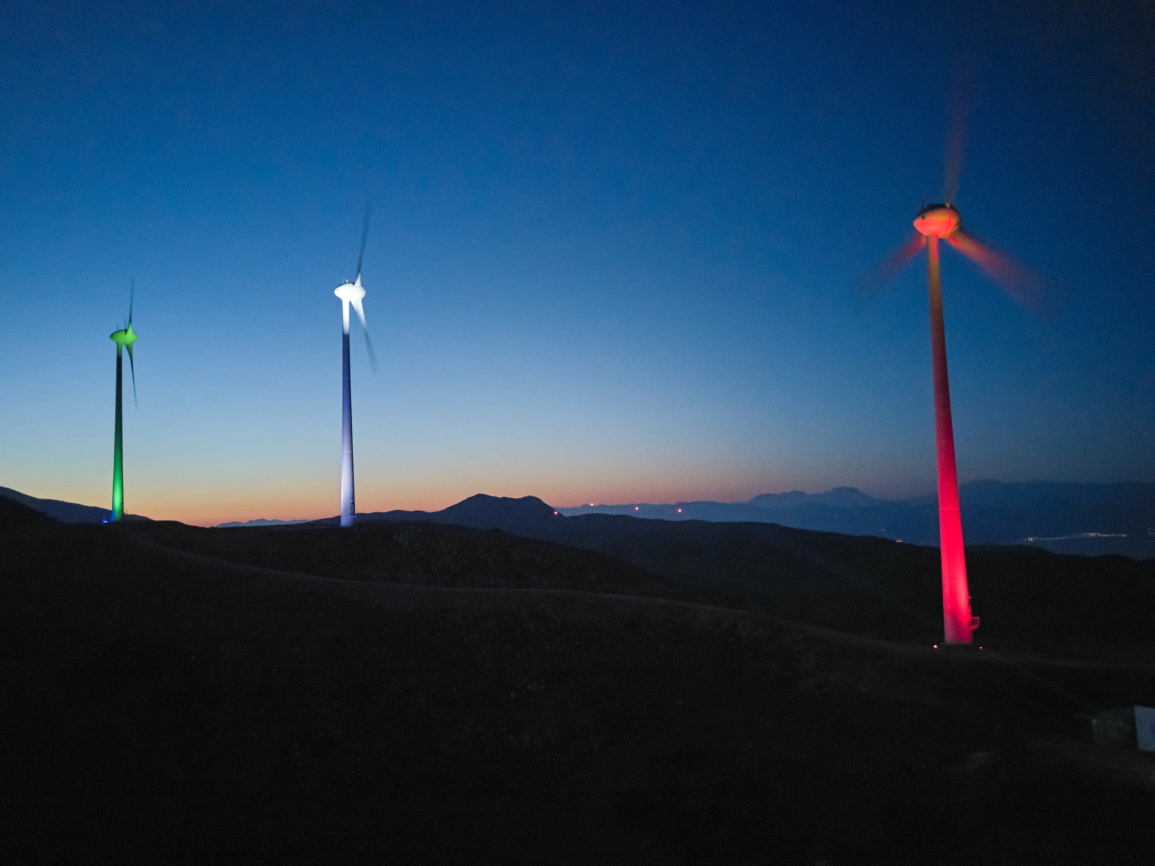 Ο φωτισμός των έργων στη Θράκη, στην Πελοπόννησο και στη Νότια Εύβοια πραγματοποιήθηκε ως συνέχεια του φωτισμού της Ελληνικής Βουλής με την ιταλική σημαία πριν από κάποιες μέρες, δείχνοντας ότι οι δύο χώρες μένουν ενωμένες σε αυτή την παγκόσμια πρόκληση. Πιο συγκεκριμένα, φωτίστηκαν τα αιολικά πάρκα «Μοναστήρι 2» στη Θράκη, «Λίθος» στα Καλάβρυτα, «Κερασιά» που ανήκει στον Καφηρέα Νοτίου Ευβοίας, τη μεγαλύτερη συστοιχία αιολικών πάρκων στην Ελλάδα, και το υδροηλεκτρικό έργο του Γλαύκου στην Αχαϊα. Αναμφίβολα η πιο συγκινητική στιγμή ήταν το Βράδυ της Μεγάλης Παρασκευής όταν φωτίστηκαν   οι πυλώνες των ανεμογεννητριών με τις σημαίες των δύο κρατών.