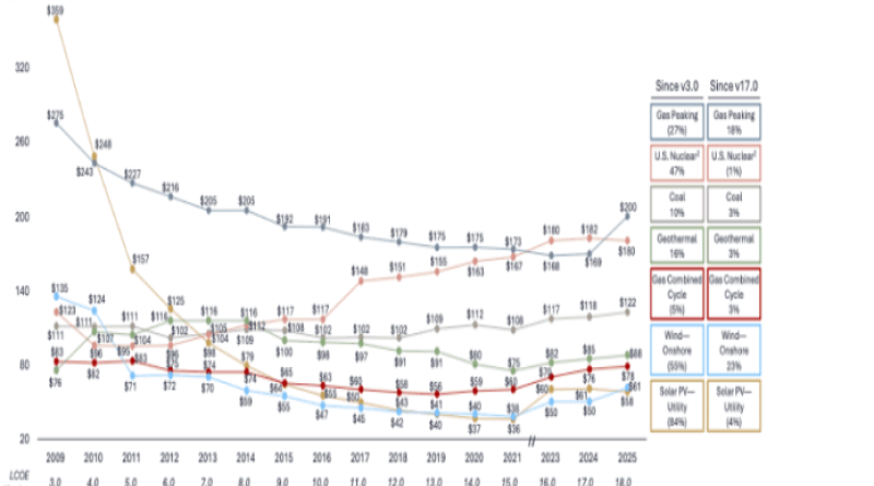 Lazard’s Levelized Cost of Energy (LCOE) 2025 Report has a great graph showing this change. From 2009 to 2025, the average LCOE for Solar PV dropped 84% from $359/MWh to $58/MWh. At its low point in 2021, Solar PV was only $36/MWh. For comparison, coal during the same period rose from $111 to $121/MWh, a 10% increase.