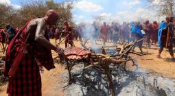 Thousands of spectators in traditional red cloaks and beaded jewellery gathered to watch 160 young Maasai - 120 men and 40 women - compete in a series of events including spear and club throwing, standing Maasai high jump, and sprints.