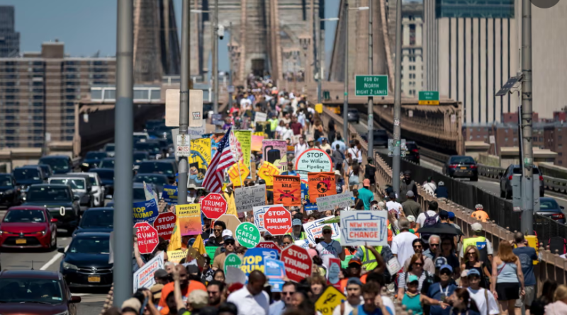Cover photo: Climate activists march across the Brooklyn Bridge to demand a halt to the construction of the Williams Pipeline, on 9 August 2025. Photograph: Pacific Press/LightRocket/Getty Images