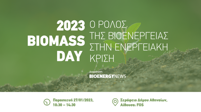 Η BIOMASS DAY 2023 με θέμα «Ο ρόλος και η συνεισφορά της Βιοενέργειας ως ενεργού κλάδου της Βιοοικονομίας στην αντιμετώπιση της Ενεργειακής Κρίσης» θα πραγματοποιηθεί την Παρασκευή 27 Ιανουαρίου 2023, στο Σεράφειο Δήμου Αθηναίων, (Αίθουσα: FOS) από τις 10:30 - 14:30.