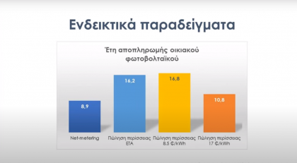 Ο κ. Θωμάς ανέδειξε, πως από μελέτη του ΣΕΦ προέκυψε ότι, ενδεικτικά για ένα μικρό φ/β των 3 kwp, που εγκαθίσταται, χωρίς καμία επιδότηση, θα αποπληρωθεί σε περίπου 9 χρόνια. Αντίθετα με μία επιδότηση της τάξης του 30%, ο χρόνος αυτός μειώνεται στα 4 χρόνια.