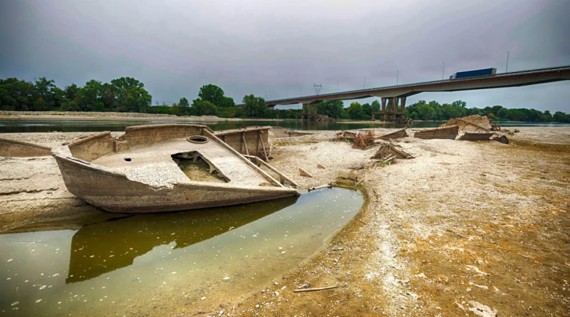 It has, in some places, completely disappeared this summer. Next to Saluzzo, upstream of Turin, I walked from one bank to the other without wetting my feet. There was only white gravel with buddleia where the “great river” was supposed to be. The Po has 141 tributaries, so further downstream the river does return. But two weeks ago, in late June, the flow measured at Pontelagoscuro, near Ferrara, fell below an average of 145 cubic metres per second (the historic average flow for June is 1,805 cubic metres per second). At Cremona – roughly halfway along the Po – the water is currently more than 8 metres (26ft) below “hydrographic zero”.