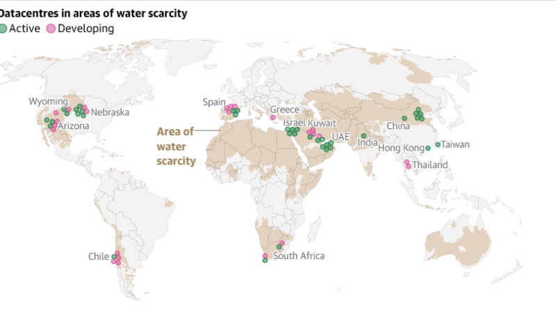 “It’s no coincidence they are building in dry areas,” as datacentres have to be built inland, where low humidity reduces the risk of metal corrosion, while seawater also causes corrosion if used for cooling, Jaume-Palasí said.