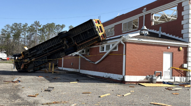 Cover photo: A school bus was thrown onto the roof of the former Winterboro High School building in Talladega County, Ala. during this weekend's severe weather. Credit: Courtesy of NWS Birmingham