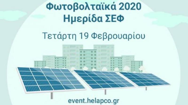 Η ημερίδα “Φωτοβολταϊκά 2020: Ο ενεργειακός μετασχηματισμός ξεκίνησε”, διοργανώνεται από τον Σύνδεσμο Εταιριών Φωτοβολταϊκών και θα πραγματοποιηθεί στο χώρο της Αίγλης Ζαππείου, την Τετάρτη στις 19 Φεβρουαρίου από τις 09.00 π.μ. έως τις 5.00 μ.μ.