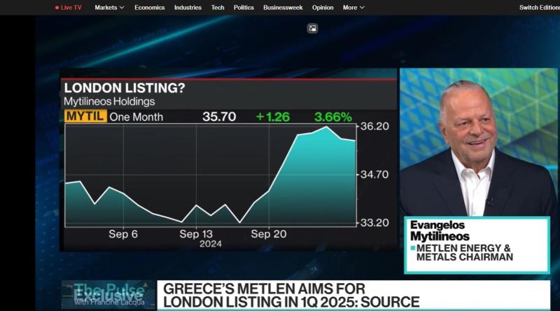 Ο Ευάγγελος Μυτιληναίος, Chairman & CEO της METLEN Energy & Metals, μίλησε σήμερα στο Bloomberg TV και, συγκεκριμένα, στην εκπομπή The Pulse με τη δημοσιογράφο Francine Lacqua.