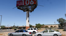 A billboard shows the temperature in Phoenix, Arizona, on 5 June 2024. Photograph: Justin Sullivan/Getty Images