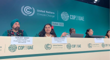 NGO representatives speak at a press conference at COP28 in Dubai, December 2023. (Photo/Megan Rowling)