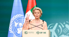 President of the European Commission Ursula von der Leyen addresses national delegations during the COP28, UN Climate Change Conference, held by UNFCCC in Dubai Exhibition Center, United Arab…