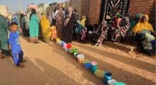 Residents wait to collect food in containers from a soup kitchen in Omdurman, Sudan March 11, 2024. Nearly five million people in the country are close to famine as Sudan's civil war passes the one-…