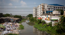 Environmental pollution on river banks near a textile industrial area in Dhaka, Bangladesh. Photograph: Andrew Aitchison/In Pictures/Getty Images