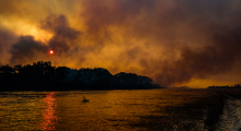 Perched atop blackened trees, howler monkeys survey the ashes around them. A flock of rheas treads, disoriented, in search of water. The skeletons of alligators lie lifeless and charred.