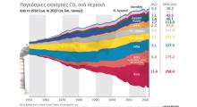 Την τελευταία εικοσαετία (2000-2022), Κίνα, Ινδία και λοιπή Ασία εξακολούθησαν να έχουν μεγάλες αυξήσεις εκπομπών, ενώ ΗΠΑ και Ε.Ε. είχαν μικρότερες αυξήσεις .