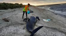 Twenty nine pilot whales have died on a beach in New Zealand after being washed up on shore, according to authorities.
