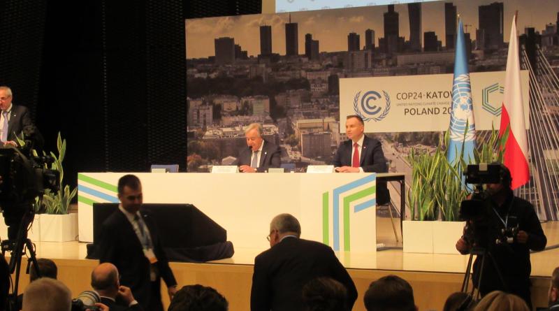 Στην συνέντευξη τύπου που ακολούθησε την επίσημη έναρξη του COP24, συμμετείχαν μόνο ο γ.γ. των Η.Ε. Αντόνιο Γκουτιέρες και ο Πρόεδρος της Πολωνίας κ. Ντούντα.