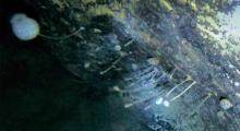 The accidental discovery of marine organisms on a boulder on the sea floor beneath 900 metres (3,…