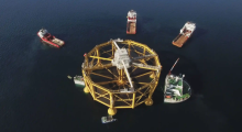 The enclosures stretch the length of an Olympic-size swimming pool, but from above they appear as floating dots scattered across the ocean. Inside, fish mill about as the submerged pens sway to the…
