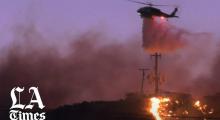 Unusually strong winds for June fanned the flames of 10 wildfires around Los Angeles County Monday, the Los Angeles County Fire Department said.