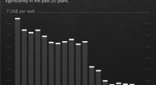 • Το κόστος της παραγωγής ηλεκτρισμού από την ηλιακή ενέργεια μειώνεται ραγδαία: σήμερα κοστίζει $50 για να παραχθεί μία μεγαβάτ-ώρα(MWh) ηλιακής ενέργειας.