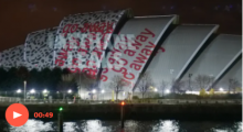 Official projectionists hit back with animations and ‘go away’ after activists beam climate slogans