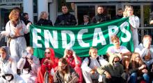 Thousands of climate-change activists formed a human roadblock on Sunday to the Frankfurt auto show, one of the largest car industry showcases in the world.