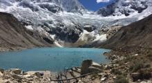 Φωλιασμένη κάτω από τις επιβλητικές άσπρες κορυφές δύο παγετώνων στο Cordillera Blanca του Περού, βρίσκεται η γαλαζοπράσινη λίμνη Palcacocha.
