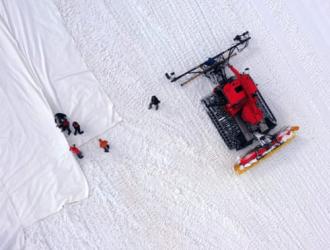 Every summer, the Presena glacier in northern Italy is protected from the sun with huge reflective tarps.
