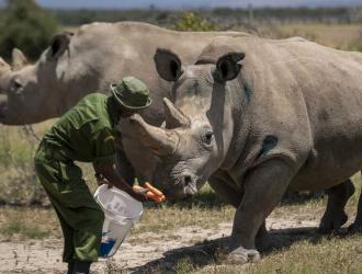 Scientists in Kenya have harvested 10 eggs from the last two remaining northern white rhinos in the race to keep the species from total extinction.