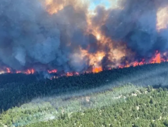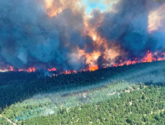 The whole town is on fire,’ says the mayor as Canadian village is evacuated due to wildfires.