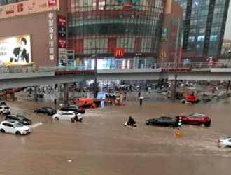 Torrential rainfall and burst rivers swamp Henan cities, with commuters trapped on subway trains.