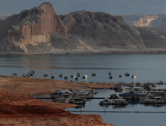 At Lake Powell on the Arizona-Utah border, the water line has dropped to a historic low, taking a heavy toll on the local industry
