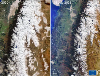Satellite images confirm snow decrease spurred by climate crisis as glaciers recede and communities reliant on mountain water face shortages The Andes mountain range is facing historically low snowfall this year during a decade-long drought that scientists link to global heating.