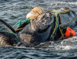 Warming sea and shifting food sources drive whales into areas where they risk ship strikes and entanglement in fishing gear.