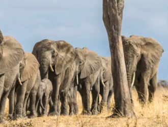 Imagine you’re in a hot air balloon flying over an African savanna in the late growing season. Below, herds of elephants, zebras, wildebeests and rhinos roam a mosaic landscape dotted with lonesome trees and daubs of woodland on a canvas of yellow-brown grass.