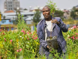 Mekbib Megersa, a survey and construction graduate, engages in gardening and landscaping works that involves mass production of plant seedling across makeshift greenhouse and nursery sites in street-sides of Addis Ababa, E