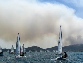 Sailing coaches at the world youth championships in Volos, Greece have been lauded for helping to rescue more than 130 people from wildfires in the region.