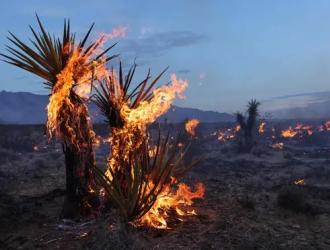 A huge wildfire burning out of control in California’s Mojave national preserve is spreading rapidly amid erratic winds and high temperatures