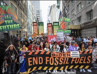 Demonstration falls days before the United Nations climate ambition summit, at which Joe Biden is expected to be a no-show Tens of thousands march in New York City to protest fossil fuels Dharna Noor