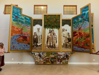 Standing at the foot of the giant hanging tapestry, Veronica Betani recalls the bitter period that is depicted in its colourful threads: mourning women watching over orphaned children, a hospital room filled with gaunt bodies, a burial.