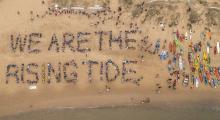Hundreds of activists swam or used kayaks to occupy the Newcastle port's shipping lane in Australia, to protest against…