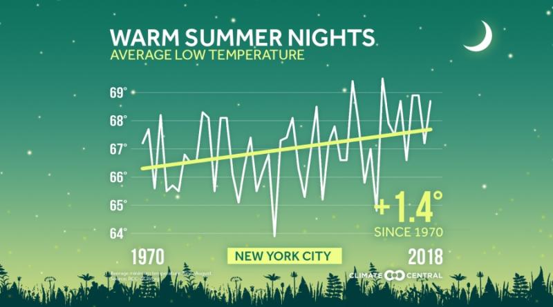 METHODOLOGY: The trend in summer minimum temperatures (June, July, August) was computed using data from the Applied Climate Information System and applying a mathematical linear regression. The national graphic used contiguous U.S. data from NOAA/NCEI Climate at a Glance.