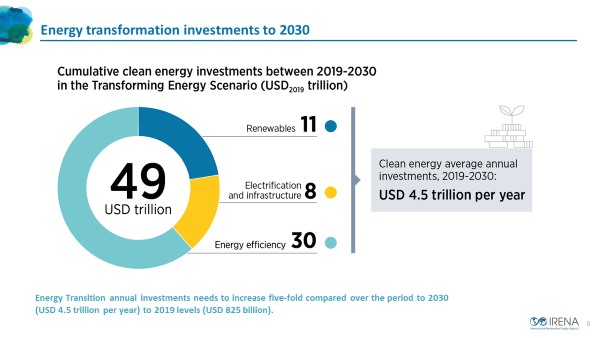 "Now is the time to invest in a better future”, said La Camera. “Government policies and investment choices can create the necessary momentum to enact systemic change and deliver the energy transformation away from fossil fuels. Driving a structural shift towards cleaner energy systems and more resilient economies and societies is more urgent than ever. Most of all, this is a global agenda, and we must leave no one behind."