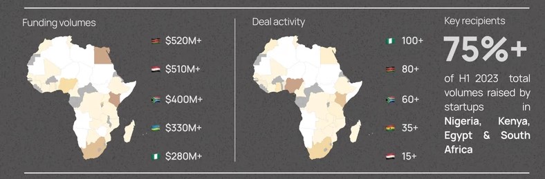 Kenya has closed over 80 deals so far, followed by South Africa with over 60 deals, Ghana with over 35 deals, and Egypt with over 15 deals in H1 2023.